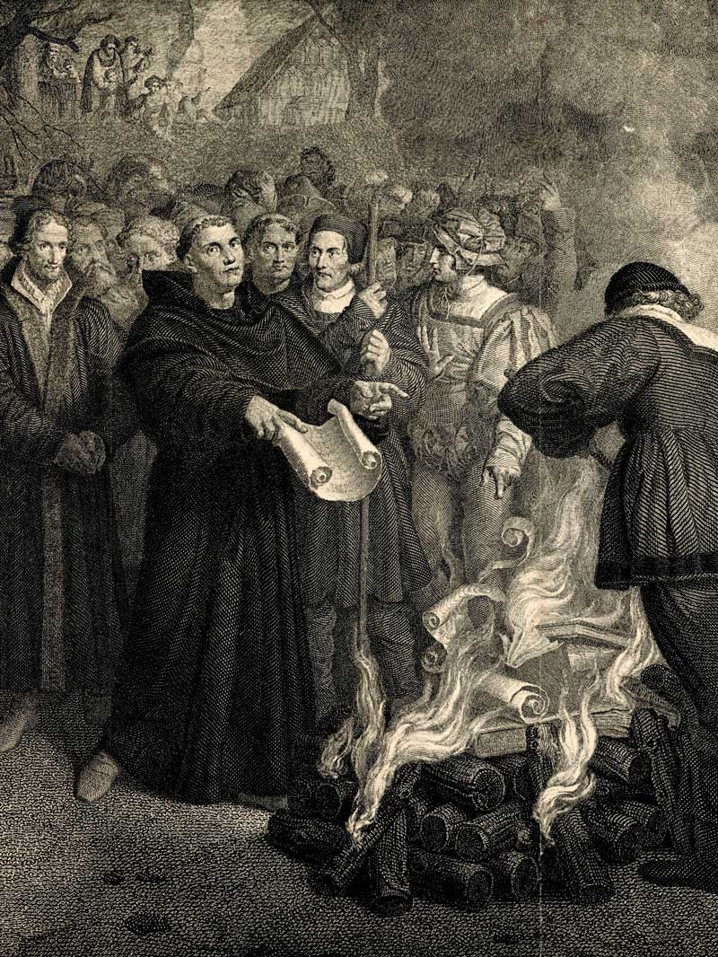 1519年、ライプチッヒで行われた神学討論会で、ルターはカトリック教会最大の理論家ヨハン・エックの巧妙な論法にはまり、「異端者」とみなされるようになりました。その後もルターは筆を止めることなく、1520年には「ドイツのキリスト者貴族に与える書」「教会のバビロン捕囚」「キリスト者の自由」などの重要な文書を次々と発表し、その思想に賛同する人々がドイツ各地で増えていきました。