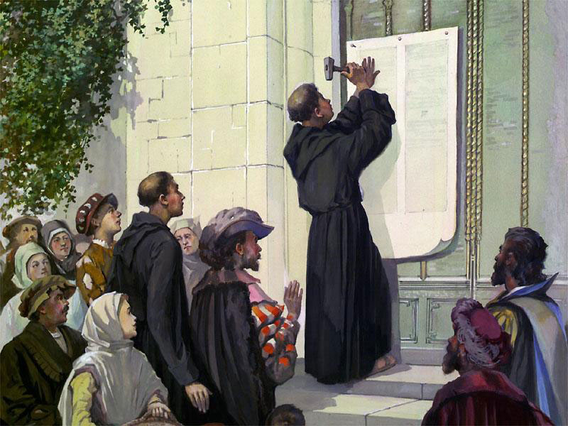 教会の腐敗を訴えるため、95か条の意見書を教会の扉に掲示